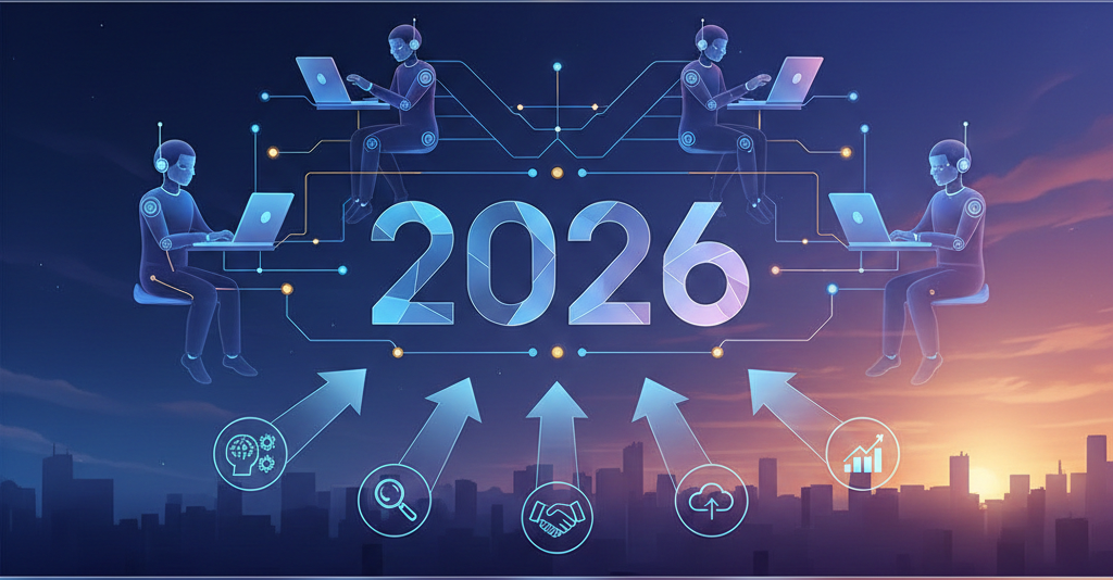 Descubra como os agentes de IA moldarão o futuro do trabalho em 2026. Um olhar profundo nas 5 tendências reveladas pelo Google Cloud.